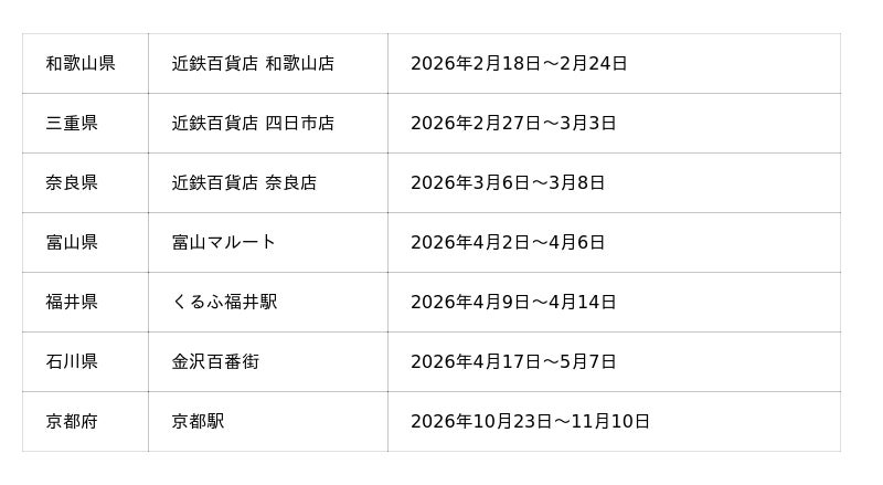 今回“ヴォヤージュの旅”第2弾で訪れるのは北陸・近畿地方! 2月18日 和歌山からいよいよスタートします。旅するお菓子が各地をめぐるこの機会、お近くの方はぜひ足をお運びください。