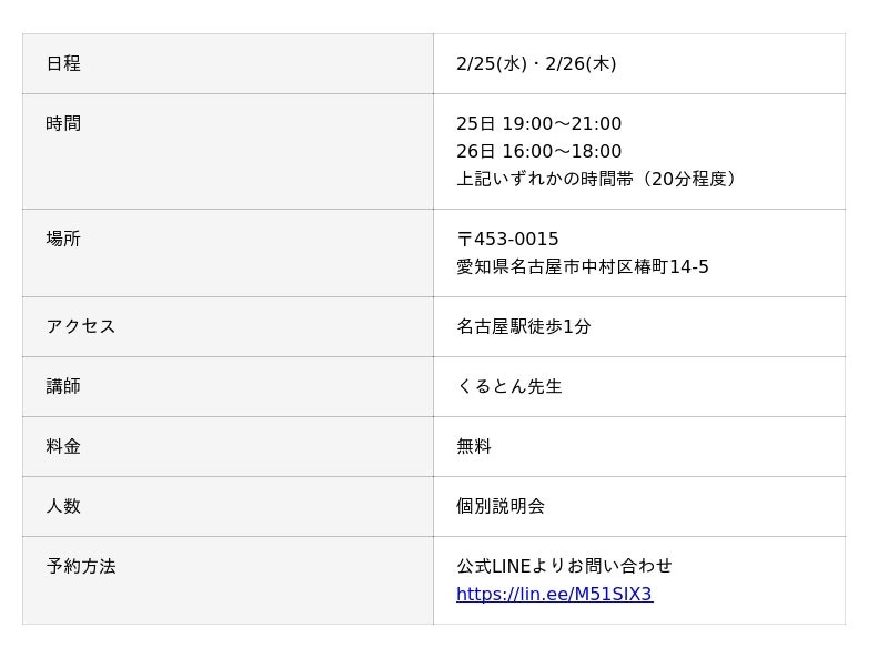 占い師養成CAMPの説明会と同時に、くるとん先生の対面鑑定も名古屋で行います。すでにご予約いただきました方、誠にありがとうございます。くるとん先生が名古屋で鑑定される貴重な機会になりますので、奮ってご参加ください。