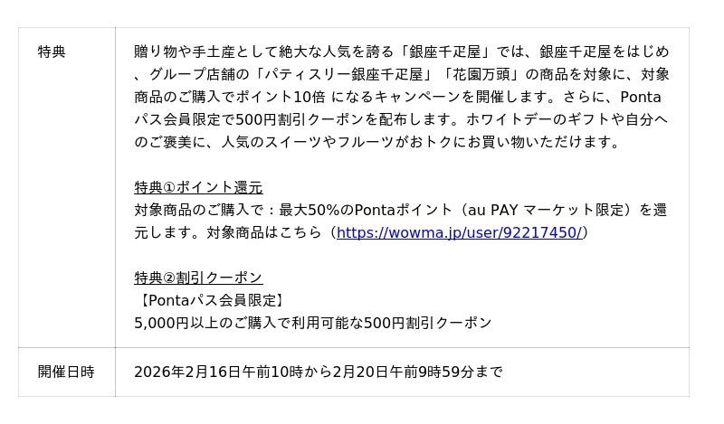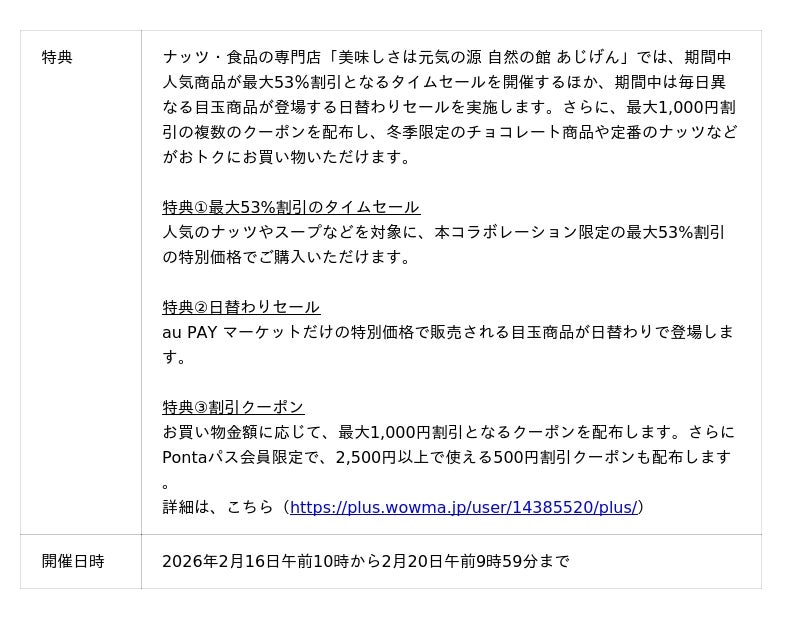 auコマース&ライフは、2026年2月13日から2月20日までの8日間、総合ショッピングサイト「au PAY マーケット」にて買い回りのポイント還元率が過去最高水準となる「超BIGお買い物ラリー」(以下 本キャンペーン)を開催します。