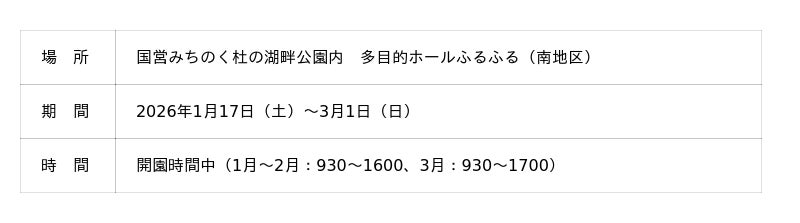 冬を彩る屋内花壇『インドアガーデン』 アイスチューリップなど展示中(国営みちのく杜の湖畔公園)