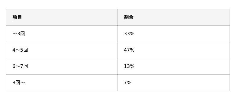 全体の約7割の人が施術を4回以上受けていることがわかります。