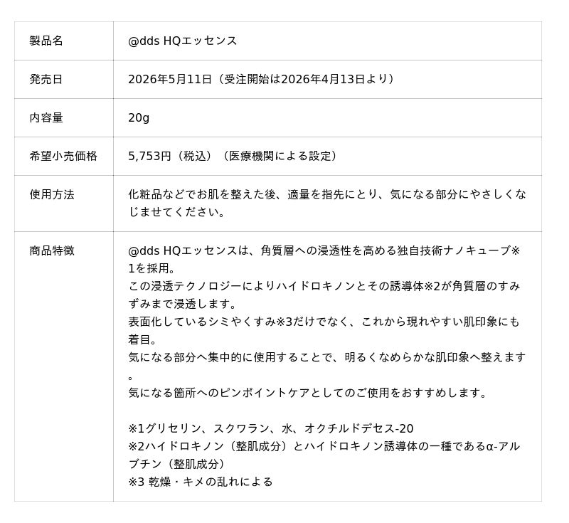 株式会社ナノエッグは、医療機関専売スキンケアブランドを「ナノメッド」から「@dds」へ刷新。レチノール・ハイドロキノン美容液をリニューアルし、2026年5月より順次発売します。