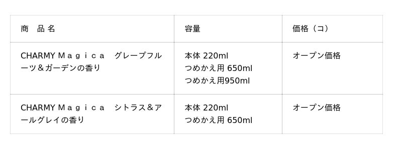 こうした生活者の悩みを解決するため、従来の『Magica』と同様の洗浄力・除菌効果を兼ね備えながら、独自の技術で手肌の水分も逃さない(※3)食器用洗剤『CHARMY Magica 手肌+(プラス)除菌』を新発売いたします。これからも、生活者に食器洗いがよりラクになる新習慣を提供し、新たな市場を創造してまいります。