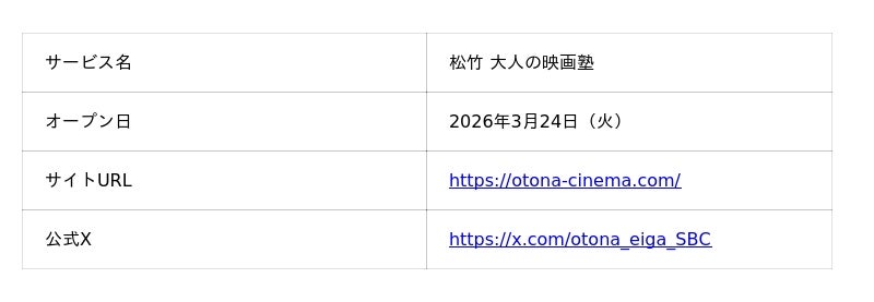 松竹ブロードキャスティング株式会社は、新プラットフォーム『松竹 大人の映画塾』を、本日2026年3月24日(火)よりサービス開始いたしました。