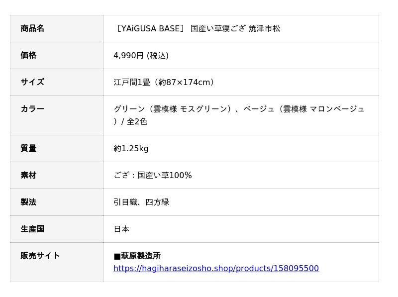 [YAiGUSA BASE] 国産い草寝ござ 焼津市松