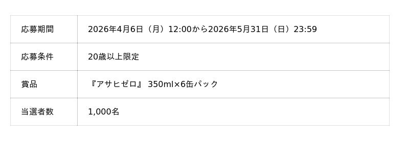 イベントの開始に合わせて、抽選で1,000名に『アサヒゼロ』が当たるキャンペーンをXで実施します。アサヒビール公式Xアカウントからキャンペーンサイトにアクセスし、『アサヒゼロ』の飲用経験や、ビールが好きかどうかなどの質問に回答すると生成される画像を投稿することで、応募できます。『アサヒゼロ』を飲んだことがある人も、まだ飲んだことがない人も参加できます。