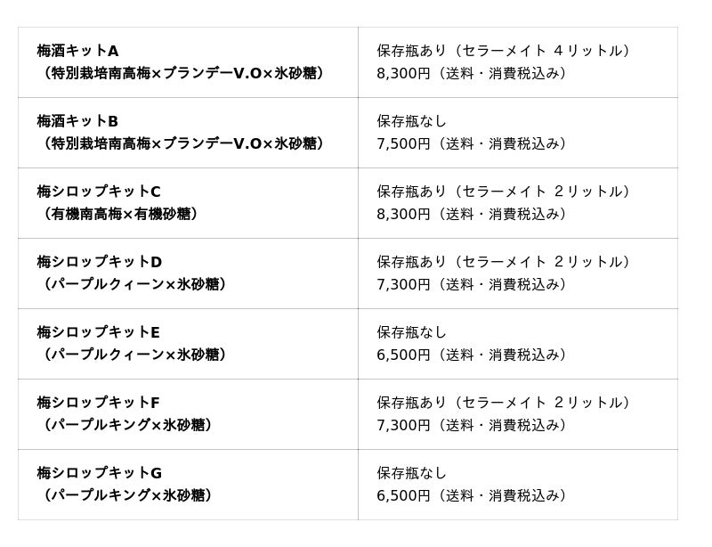 ◇対象キット:F、G(梅シロップキット)