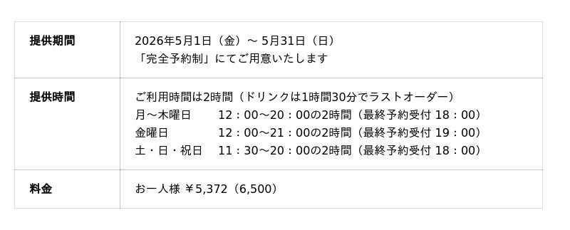 2026年5月1日(金)~5月31日(日)までの期間限定・完全予約制で提供