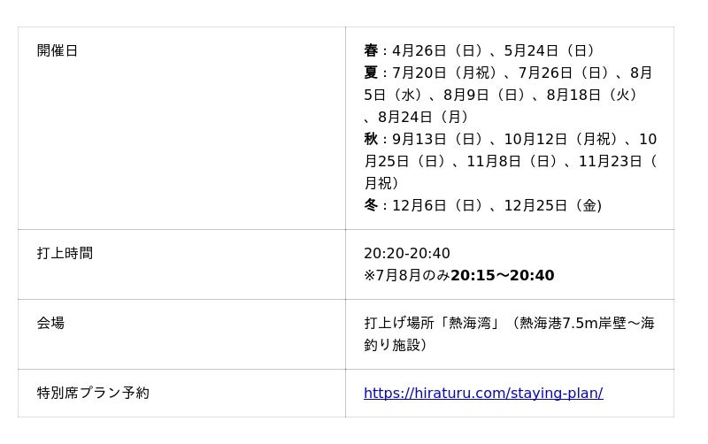 令和8年度の熱海海上花火大会が始まります!次回は4月26日四季を彩る年間15回の花火大会では特等席確約の送迎付プラン販売開始しました!春の魅力的なイベントも開催中!