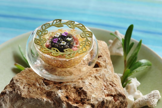 「島テロワール」のコンセプトのもと、島の風土や食文化に根ざした食材を、フレンチの技法で仕立てたコース料理です。竹富島を含む八重山の島々には、一般的に知られる南国の食材だけでなく、自然環境や歴史が育んだ特有の食文化が存在しています。例えば、祝いの席でふるまわれるヤギ、独自の製法で作られた醤油や八重山の綺麗な海でストレスなく育ったエビなど、島の知られざる食材や受け継がれてきた文化を、フランス料理の技法と新たな発想を用いて昇華しました。静かに流れる島時間を感じながら、この土地ならではの美食を堪能することができます。