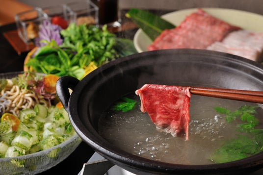 竹富島で古くから親しまれてきた命草(ぬちぐさ)(*1)をはじめ、肉、野菜、海藻をふんだんに使用した滋味豊かな鍋料理です。一棟ずつ独立した客室で、時間に縛られることなくゆったりと食事を楽しめます。
