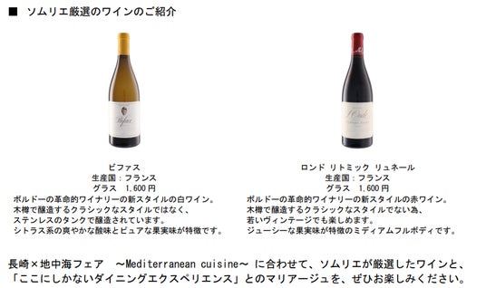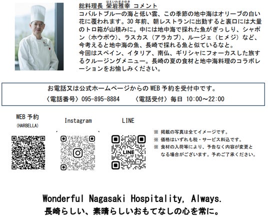 この機会にぜひ、地中海と長崎の恵みが織りなす味覚をお楽しみください。