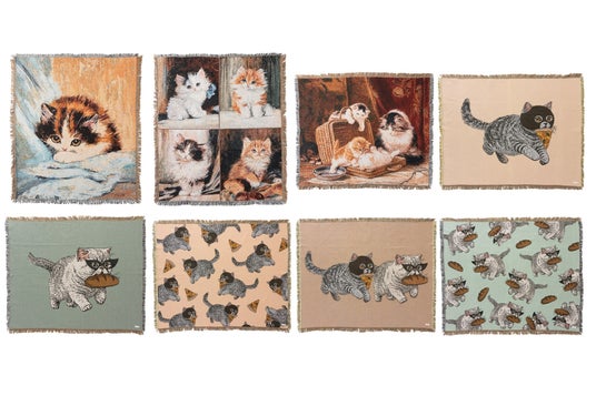 猫犬デザイン ジャガード織 スローケットラグ アソート 130 × 160 cm