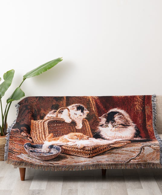 愛くるしい猫たちがジャガード織で表現された大判スローケットの新デザインが登場。