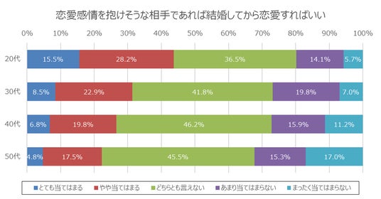 「恋愛感情は結婚してからでも」20代の43.7%が支持