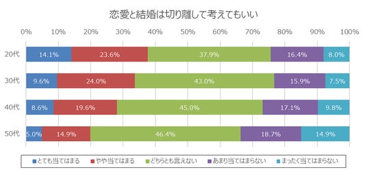 ~若い年代になるほど、「恋愛と結婚は切り離してもいい」と考える傾向に~