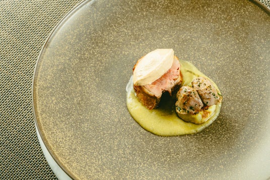 ほろほろ鳥石蒸し焼き 白レバー 砂肝 大葉ブルギニオン なす