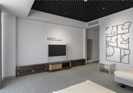 各客室には、漫画のコマ割りや吹き出しをモチーフにした独自のグラフィックを施し、ホテルおすすめの本を置いています。また、THE LIBRARYの蔵書をお部屋でお読みいただくことも可能です。お部屋のソファやテラス席で、あるいはベッドや畳に寝ころびながら、思い思いのスタイルで読書をお楽しみいただけます。