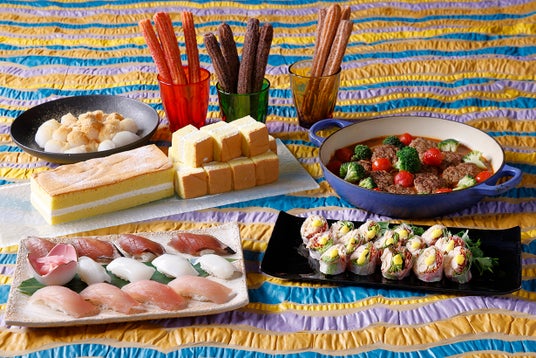 握り寿司(ディナー)/蒸し鶏の生春巻き(ディナー)/チュロス/台湾カステラ/水わらび餅