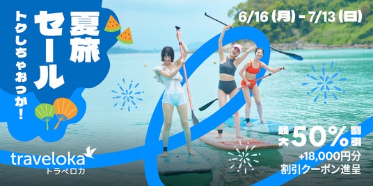 ホテル、航空券、アクティビティ、空港送迎、レンタカーなどの予約をオールインワンで提供する旅行予約プラットフォーム「トラベロカ(Traveloka)」(以下、トラベロカ)は、日本市場への本格的なサービス展開を記念して、2025年6月16日(月)から7月13日(日)まで「トクしちゃおっか!夏旅セール」を開始いたします。