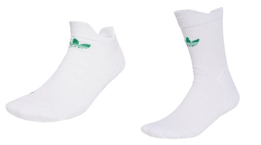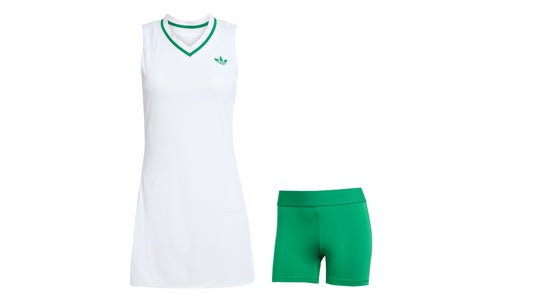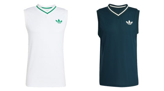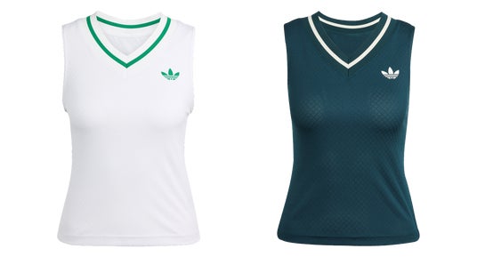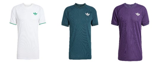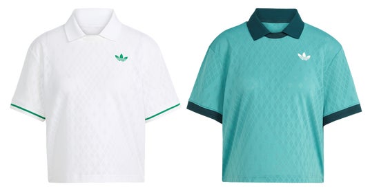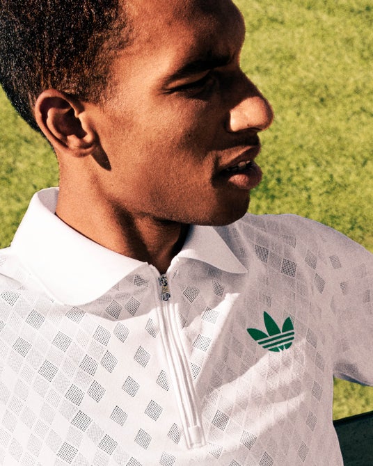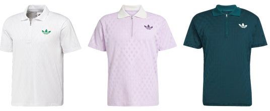 今回のコレクションでは、長年のドレスコードであるホワイトをベースに、フレッシュな視点で新しいカットやシルエットを探求しました。スタン・スミスをはじめとするレジェンドたちによって有名となった1970年代テニスファッションの定番であるオープンカラーを採用しながら、大会の天然芝を思わせる鮮やかなグリーンで、トレフォイルロゴやコントラストの効いたステッチを施しています。さらにポロシャツのアーガイルチェック風パターンや、テニスボールのモチーフが印象的なジッパープルなど、独特のデザインディテールを施したアイテムも登場します。