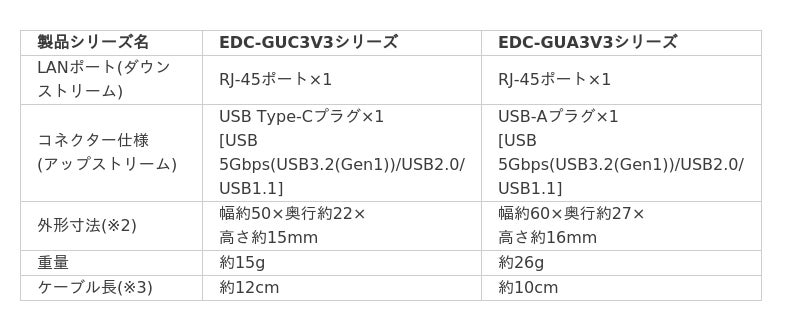 ※1:EDC-GUC3V3シリーズのみiPadOSに対応 ※2:ケーブル含まず ※3:コネクター含まず