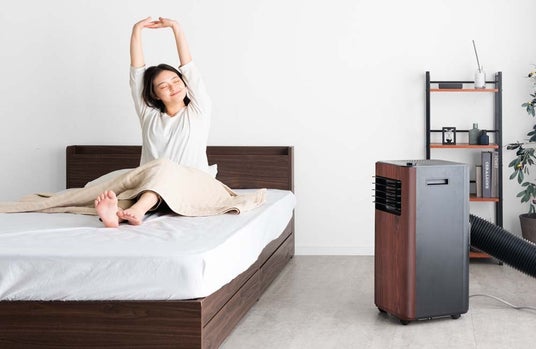 (写真:『スポットクーラー 木目デザインモデル』を寝室に設置したイメージ)