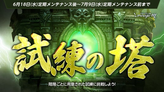 PCオンラインRPG「リネージュ」のモバイル版タイトル『Lineage M(以下、リネージュM)』のサービス、運営をしているエヌ・シー・ジャパン株式会社(本社:東京都港区、代表取締役:林 元基(イム ウォンキ)、以下エヌシージャパン)は、2025年6月18日(水)に、期間限定挑戦型コンテンツ「試練の塔」の登場、およびイベント「激闘!盟約の力を手に入れろ」の開始をお知らせします。