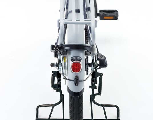 リアキャリアでのサークル錠で、狭い駐輪場でもラクに施錠・開錠が可能。リアテールランプはソーラー式オートライトで自動点灯/給電。