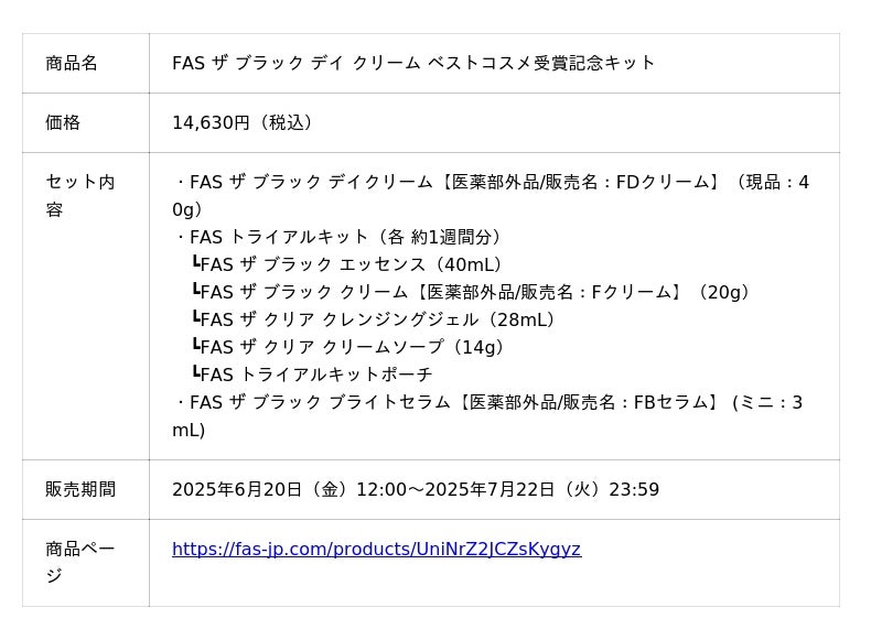 ■「FAS ザ ブラック デイ クリーム ベストコスメ受賞記念キット」を発売