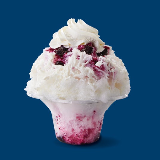 「天然水の削り氷」の特長は、氷を極薄に削ることで生まれるふわふわとした口当たり。氷は、中央アルプスと南アルプスに囲まれた国内有数の花こう岩地帯の天然水を使用しています。