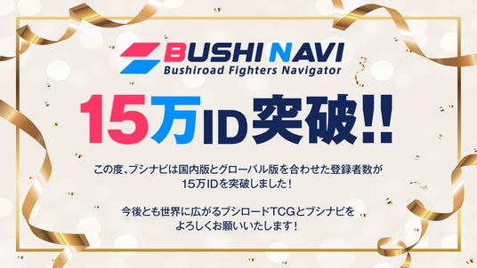 〇登録者数が15万IDを突破!今後とも世界に広がるブシロードTCGとブシナビをとよろしくお願いいたします!