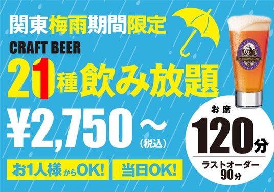 関東梅雨限定・飲み放題プラン、21種のビール飲み放題に拡大