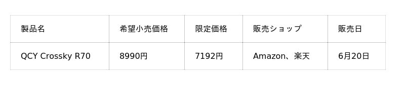 オーディオ専門ブランドQCY(本社:中国広東)は、2025年6月20日(金)、開放型(オープンイヤー)完全ワイヤレスイヤホン「Crossky R70」の販売を開始します。本製品は、Ni-Ti形状記憶合金と17×12mm大型ドライバーを組み合わせ、スポーツシーンで求められる「ずれない装着感」と「高音質」を両立しました。