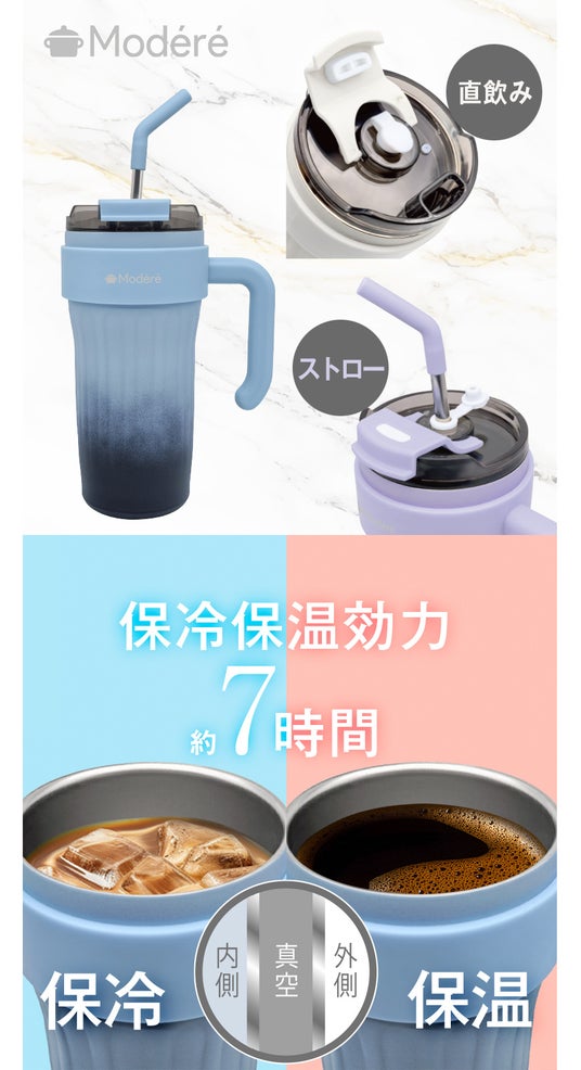 新商品!!大容量がちょうどいい。【Modere】ストロー付き真空ステンレスタンブラー HED-1007