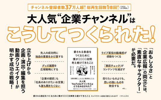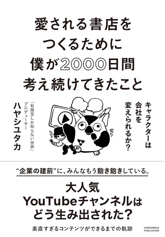 ビジネス書や実用書を中心に出版する株式会社クロスメディア・パブリッシング(本社:東京都渋谷区、代表取締役社長:小早川幸一郎)は、2025年6月20日に書籍『愛される書店をつくるために僕が2000日間考え続けてきたこと キャラクターは会社を変えられるか?』を刊行しました。今年、創業115周年を迎える、神奈川県を中心に展開する老舗書店「有隣堂」が運営する企業YouTubeチャンネル『有隣堂しか知らない世界』のプロデューサー・ハヤシユタカ氏が、チャンネル立ち上げから5年間(約2000日間)の軌跡と成功の秘訣を初めて明かした1冊です。登録者数37万人、総再生回数1億回を突破し、企業チャンネルとしては異例の成功を収めた同チャンネルの舞台裏には、斜陽産業と言われる書店業界に風穴を開けようとする熱い想いと、数々の試行錯誤に裏付けられた戦略がありました。