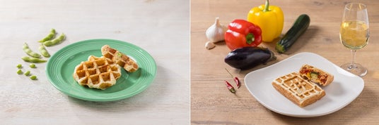 セイボリー系ワッフル『枝豆チーズベーコン』と『アラビアータ』