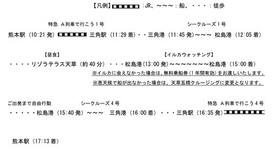 (5)行程:基本プラン(熊本駅集合)は、添乗員が同行します