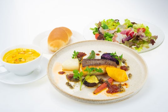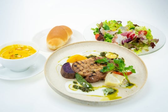・リゾラテラス天草では、「天草産季節の魚のランチコース」または「天草産ブランド豚のランチコース」をお召し上がりいただけます。こども旅行代金の昼食は、キッズハンバーグプレートとなります。