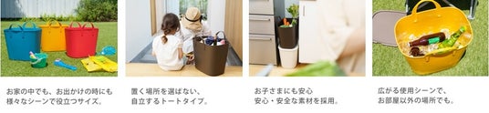 素材はポリエチレンを採用しており、軽量で持ち運びもスムーズです。丈夫でやわらかく、また水濡れにも強いので、ご家庭内での衣類などの収納だけでなく、お買い物の際のバッグとして、アウトドアでの持ち運びバッグとして、様々なシーンで活躍します。