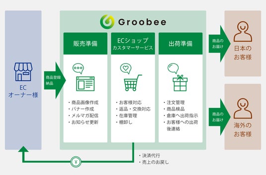 Groobee(https://groobee.com)はアーティスト・アニメやキャラクターなどのコンテンツに特化した、エンターテインメントに最適な機能が詰まった初期費用0円からスタートできるサイト構築サービスです。サイト上のクリエイティブ、CS対応から物流対応までGroobeeがサポートいたします。1つのコンテンツを取り扱う単独型のECサイト構築に加え、アーティストやコンテンツが複数存在する場合はモール型のECサイト展開も可能です。Groobeeは、SaaSとしての提供も行っており、既存のECサイトにも柔軟に対応することが可能です。