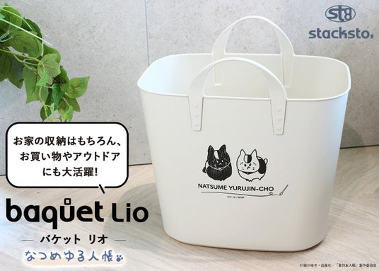 「バケット Lio(なつめゆる人帳)」は「stacksto,(スタックストー)」が展開する、バケツ型収納の「baquet(バケット)」に「夏目ゆる人帳」デザインのゆるくてかわいいニャンコ先生と黒ニャンコがあしらわれた新商品です。自立するトートタイプなので置く場所を選ばず、ご家庭内の収納はもちろん、お買い物やアウトドアにも大活躍するアイテムです。