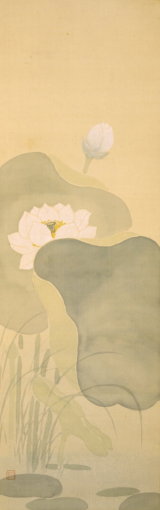 ■所蔵品展「夏に咲く」三溪園の創設者 原三溪は蓮をとりわけ好み、自らが構想した茶室を「蓮華院」と名づけ愛用したり、晩年を過ごした隠居所には蓮の意匠をあしらったりと、園内には蓮にまつわる建物が数多く残されています。そして、書画を嗜んだ原三溪が多く描いたのは、蓮の花でした。