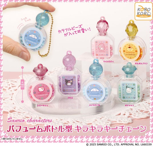 サンリオキャラクターズの「パフュームボトル型 キラキラキーチェーン」がカプセルトイに登場!平成レトロデザインが可愛い♪