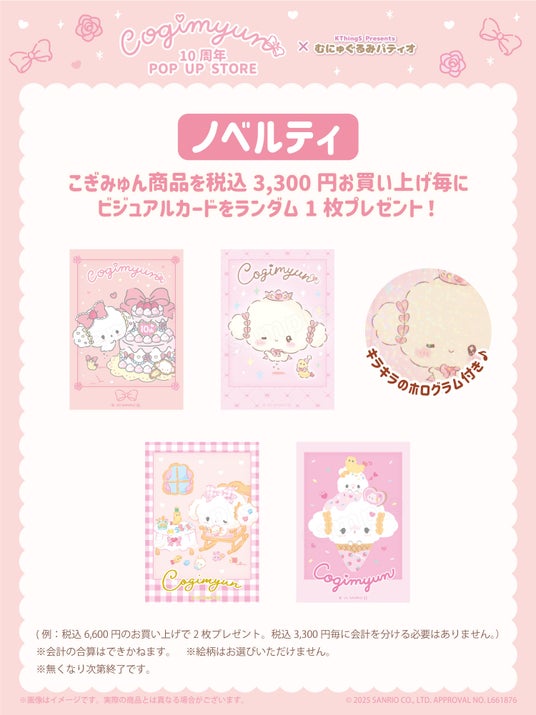期間中、イベント会場にて税込3,300円以上お買い上げごとにビジュアルカード(全4種)をランダムで1枚プレゼントいたします。