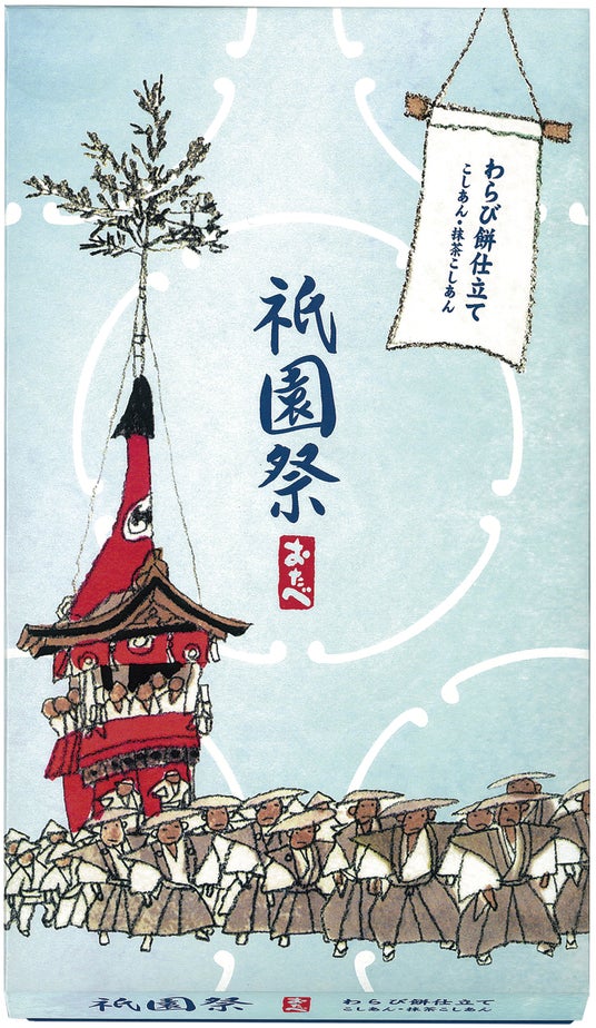祇園祭の期間に販売する、わらび餅仕立て「夏のおたべ」の祇園祭パッケージです。