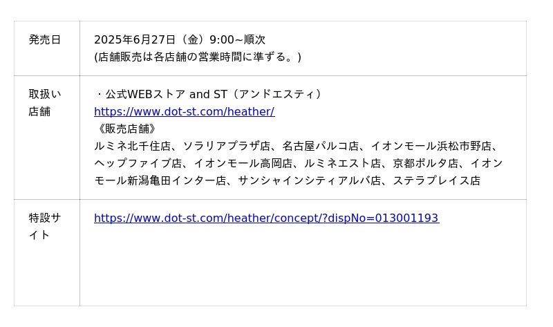 <公式ブランドサイト> https://www.dot-st.com/heather/