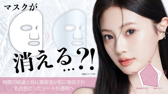 肌の温度に反応して、時間の経過とともにシートが乳白色から透明に変化。ご使用中の変化をお楽しみいただける、新感覚のマスクです。