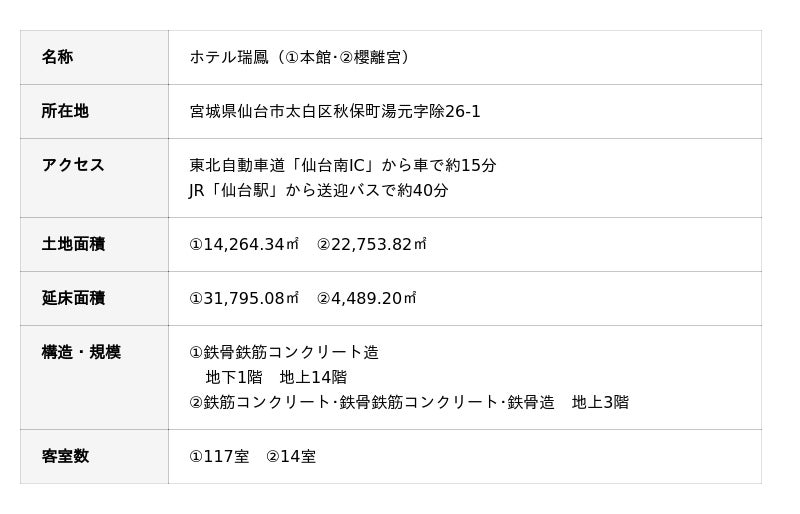 「ホテル瑞鳳」および「秋保グランドホテル」の取得に関するお知らせ