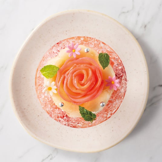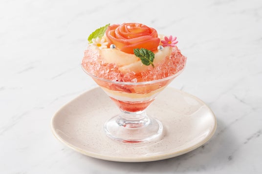 豊かな甘みと香りを楽しむ 夏の贅沢スイーツ「ローズパフェ ~桃~」